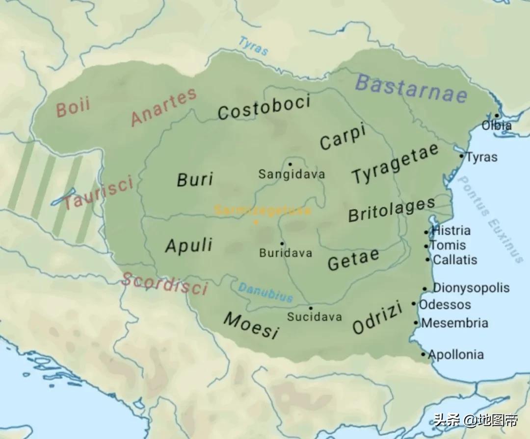 古達契亞這個區域,多瑙河以南小部分屬東羅馬帝國,北邊大部分地區相對獨立。