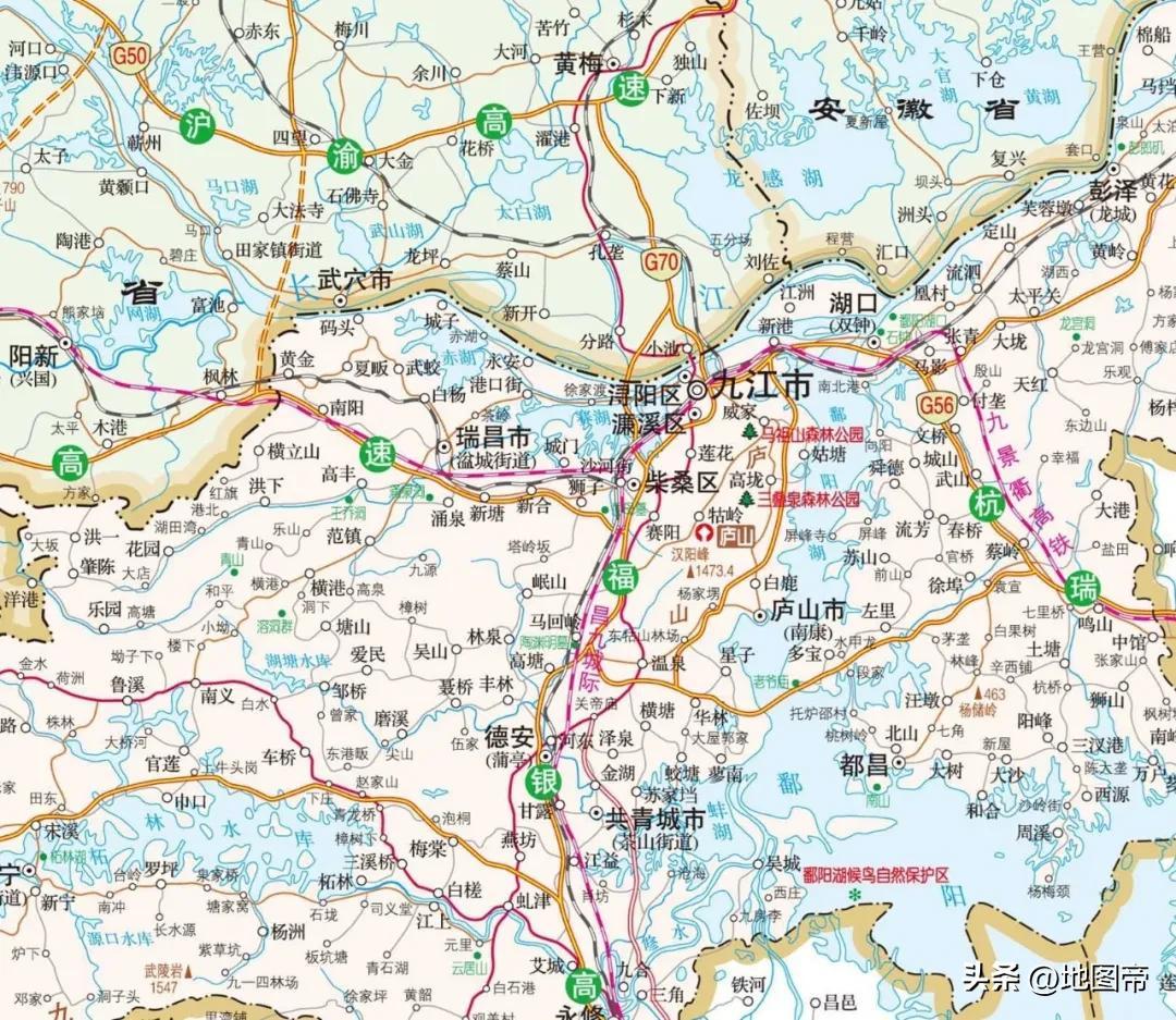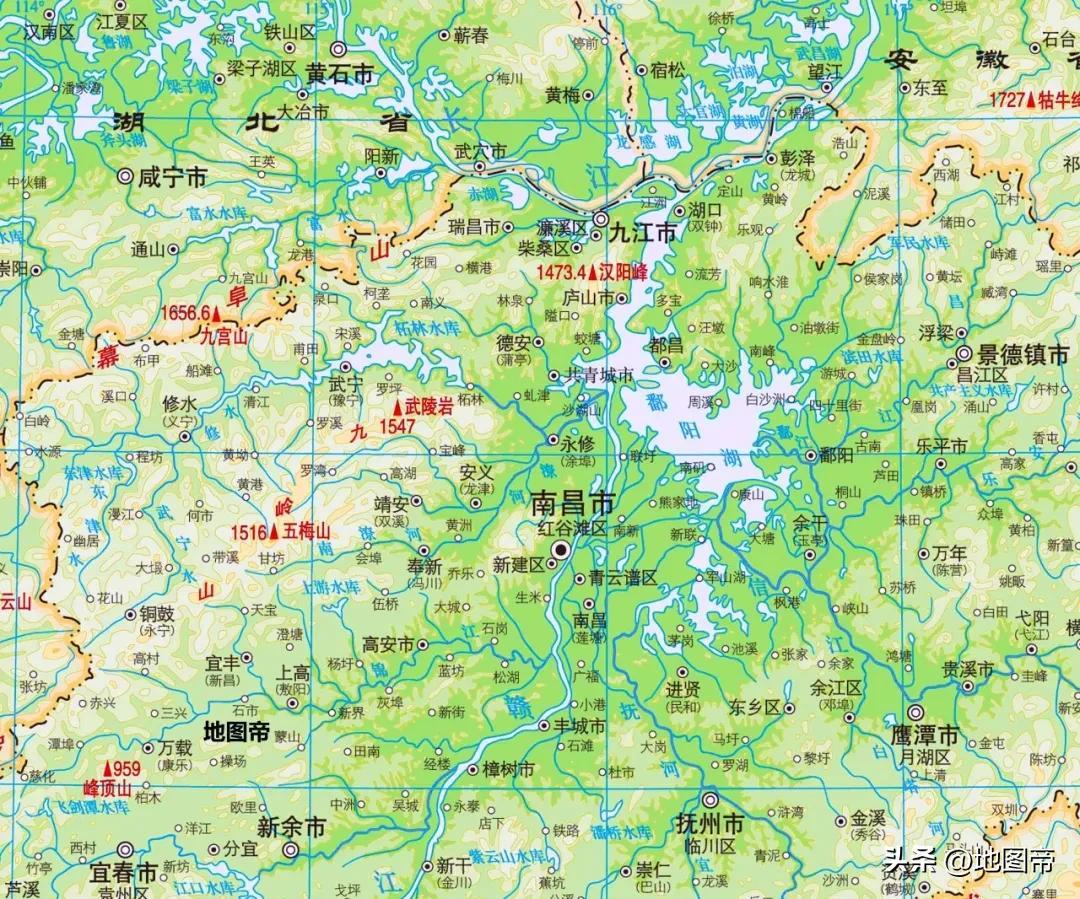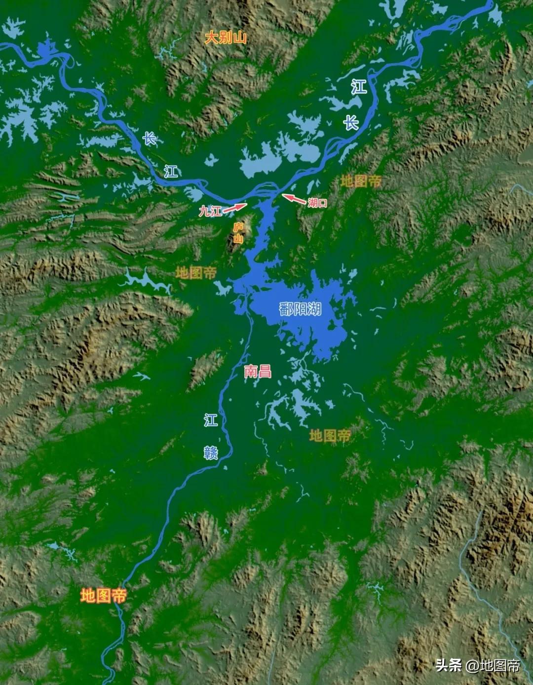 九江的地形要素齊全,大江、大湖、名山都不缺,不僅有中國最長水量最多的長江,面積最大的淡水湖鄱陽湖,還有廬山。