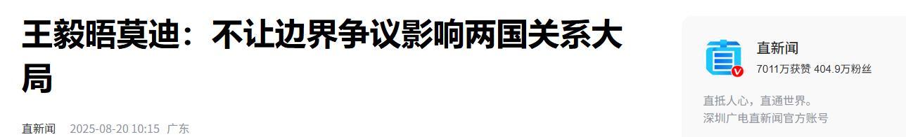 1.《王毅晤莫迪:不讓邊界爭議影響兩國關係大局》2025-08-20 10:15|來源:直新聞
