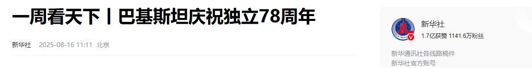 3.《一週看天下丨巴基斯坦慶祝獨立78週年》2025-08-16 11:11 | 來源:新華社