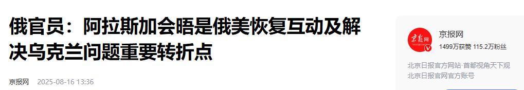 2.《俄官員:阿拉斯加會晤是俄美恢復互動及解決烏克蘭問題重要轉折點》 2025-08-16 13:36| 來源:京報網