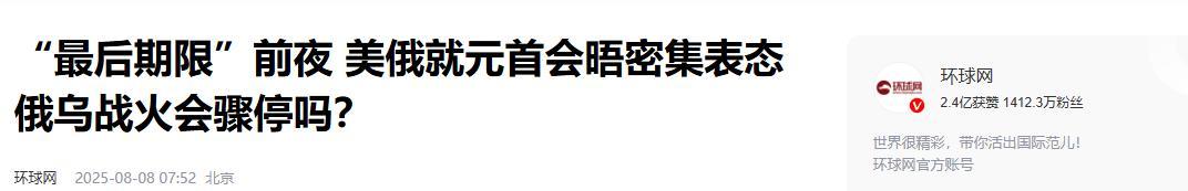 2.《“最後期限”前夜 美俄就元首會晤密集表態 俄烏戰火會驟停嗎?》 2025-08-08 07:52| 來源:環球網