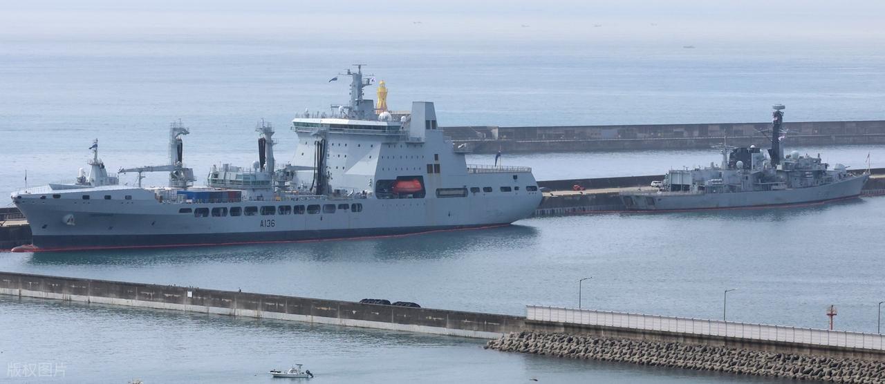 圖| ,英國護衛艦"里士滿"號與"泰德斯普林 斯號艦隊油水補給艦停靠海軍基地。