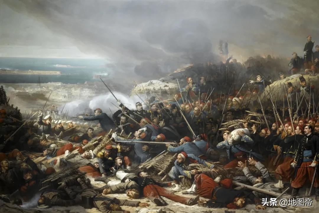 1853年—1856年,第十次俄土戰爭,又稱克里米亞戰爭,這次雙方殺得天昏地暗。沙俄約有88.90萬大軍,聯軍方面總計67.39萬,其中奧斯曼有23.56萬,英國有9.79萬,法國有30.93萬,薩丁王國有2.10萬。