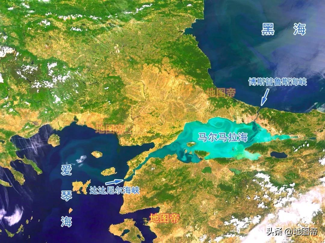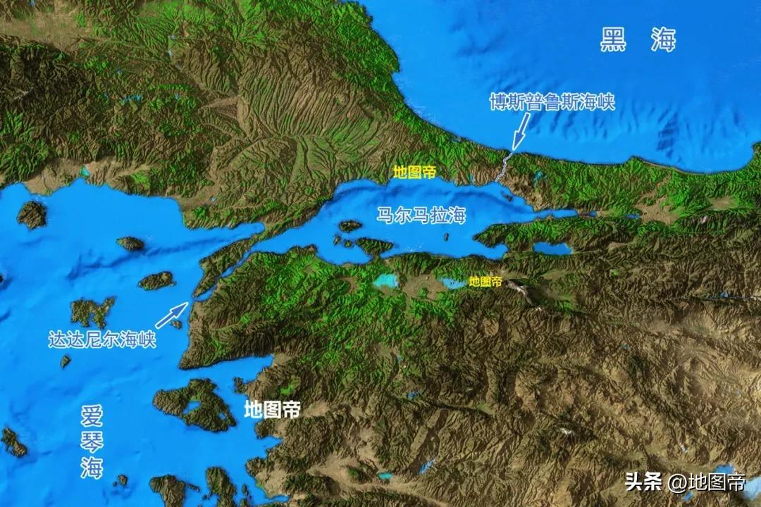 黑海與愛琴海之間是土耳其海峽,包括博斯普魯斯海峽、馬爾馬拉海、達達尼爾海峽,把土耳其分割成了亞歐兩個部分。