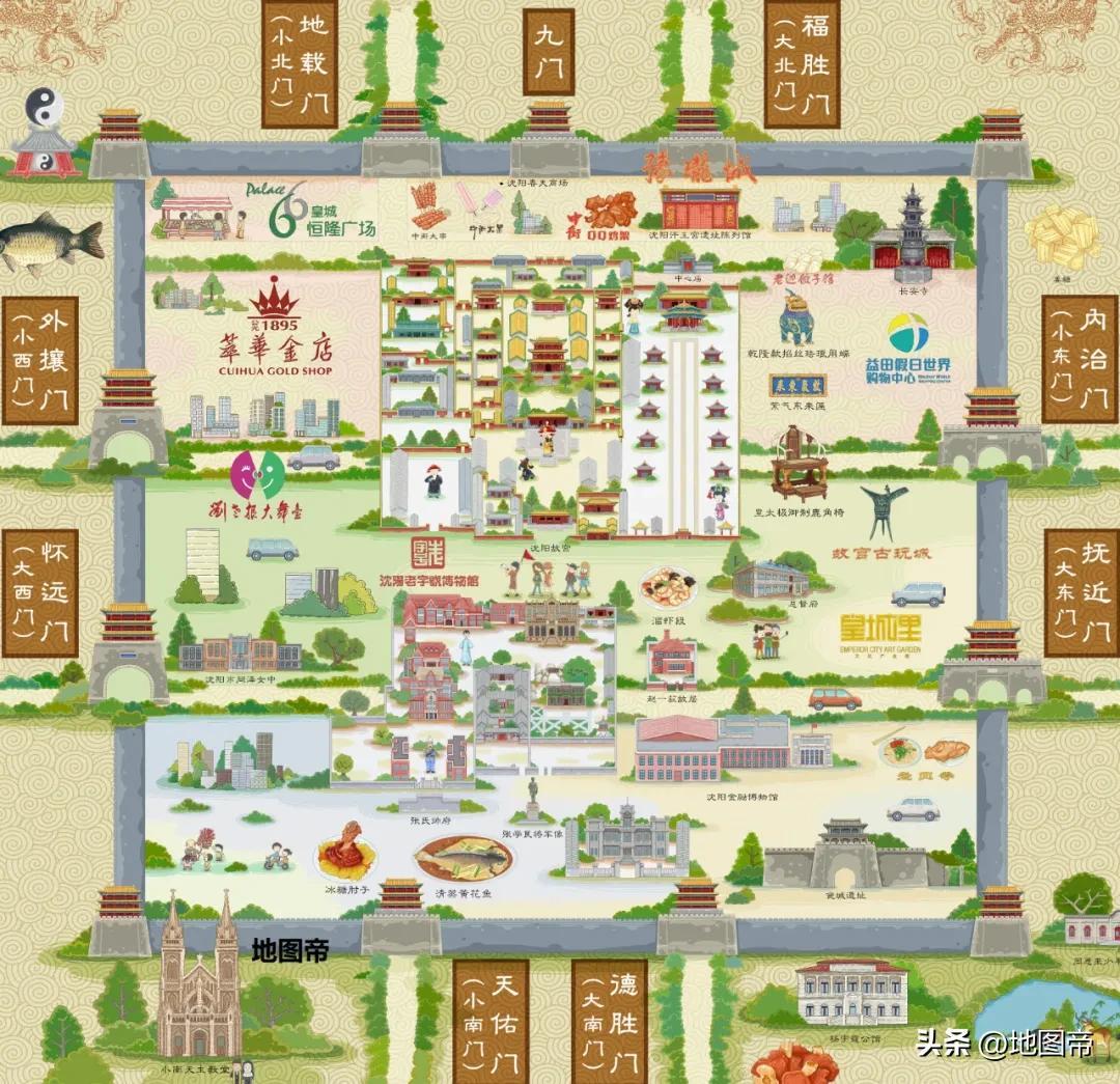 瀋陽古城外圓內方,基本格局是:城方廓圓、壇城形制、宥城融合、八門八關。
