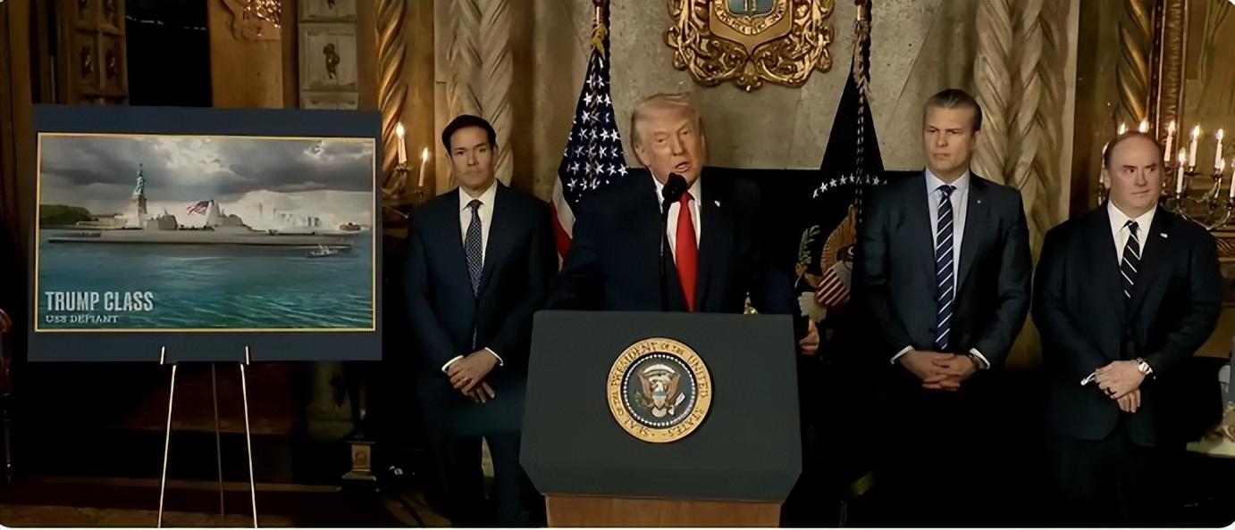 2025年12月22日,美國戰爭部長赫格塞思、海軍部長約翰·費蘭陪特朗普在海湖莊園召開記者會,宣佈美國將建造以特朗普級戰列艦爲核心的黃金艦隊,作爲美國海軍未來的主力。