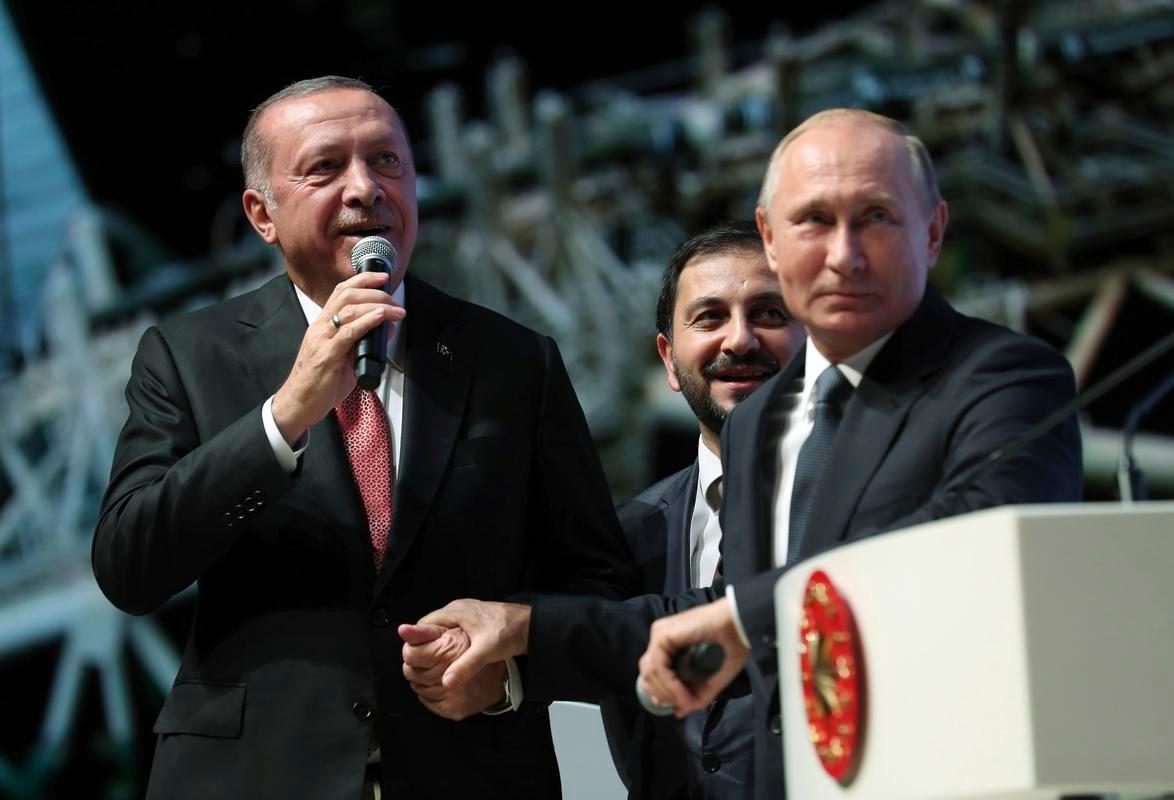 原本計劃的“普京8月訪土”,變成了埃爾多安不得不自己飛去索契“求見”。9月4日,他兩手空空地站在普京身邊,臉上的笑容比哭還難看。