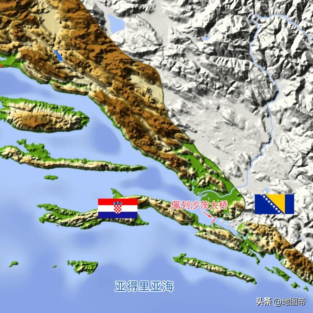 從地圖上看,克羅地亞的海岸線把波黑包裹了起來,不放大看我們還以爲波黑真是內陸國呢!然而在緊鄰佩列沙茨半島的地方,克羅地亞給波黑留下21.2千米的海岸線,可以進入亞得里亞海,但又修了佩列沙茨大橋,將波黑的出海口鎖住。