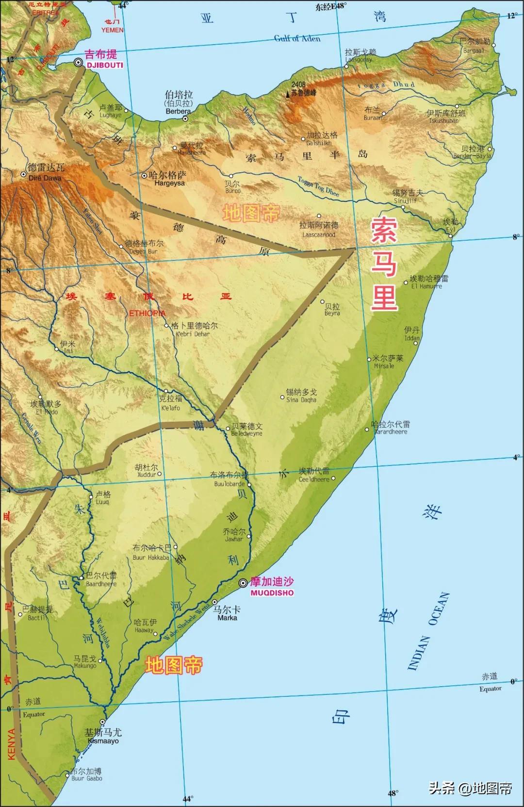 索馬里(Somalia)位於非洲東部的索馬里半島上,在亞丁灣以南,赤道穿過其南部,面積約63.77萬平方千米,放在我國省級行政區中居第五位。