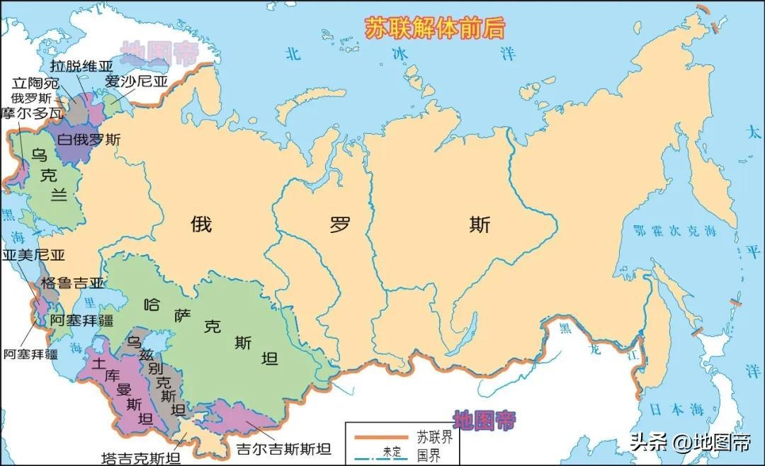 蘇聯極盛時期,領土面積達約2240萬平方千米,領土範圍包括今天:俄羅斯、烏克蘭、白俄羅斯、摩爾多瓦、高加索三國、中亞五國、波羅的海三國。