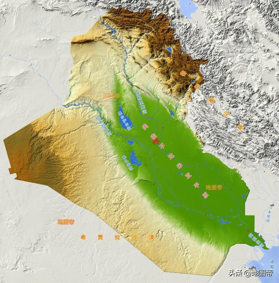 伊拉克位於阿拉伯半島東北部,幼發拉底河和底格里斯河自西北向東南流貫全境,面積約43.83萬平方千米,放在我國省級行政區中居第八位。