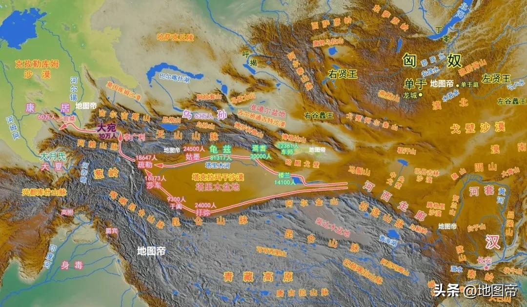 大宛國是漢朝西域三十六國之一,是個世外桃源,北東南三面高山,西部入口有個湖泊,大宛國這片草原無疑是沃土,出產汗血寶馬。
