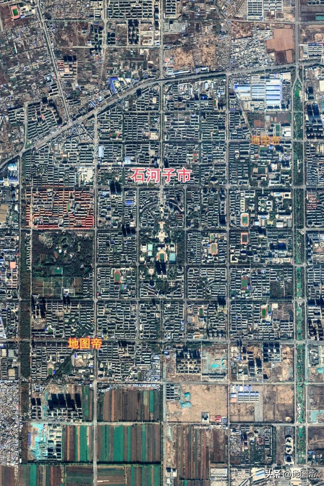 石河子(八師墾區、石河子市)地處天山山脈支脈依連哈比爾尕山北麓,準噶爾盆地南緣,在瑪納斯河谷形成的沖積平原上,面積6007 平方千米。