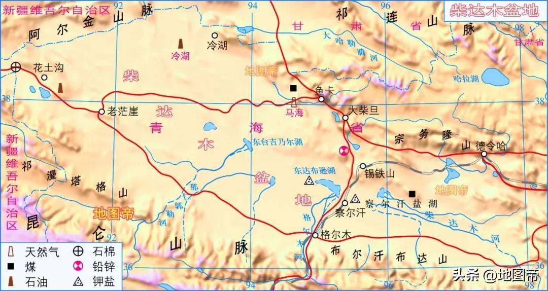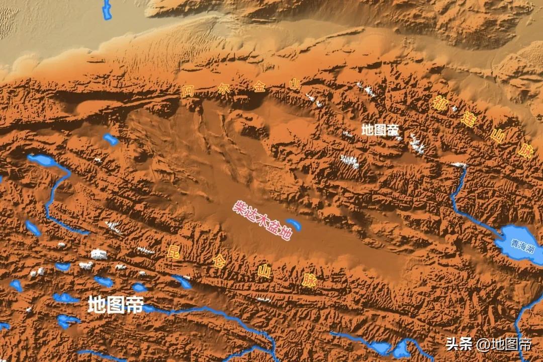 柴達木盆地海拔太高,四周是更高的山脈,人煙稀少,主要城市有東北緣的德令哈。