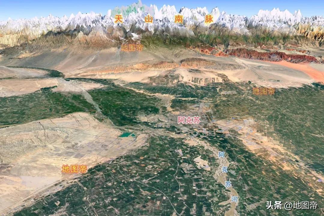 阿克蘇地區位於新疆中部,地處天山山脈中段南麓、塔里木盆地北緣,面積13.13萬平方千米。阿克蘇地區地形北高南低,北部爲天山山脈,中部爲山前礫質扇形地,洪積和沖積平原,戈壁、綠洲相間,南部爲塔克拉瑪干沙漠。