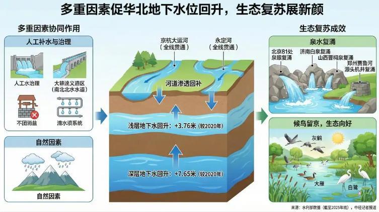 與之形成鮮明對比的是,在全球水資源問題愈發嚴峻之際,中國水利部門卻頻傳喜報:多地河流斷流情況得到了根本性改善,地下水水位回升,令乾涸多年的泉眼實現復湧。
