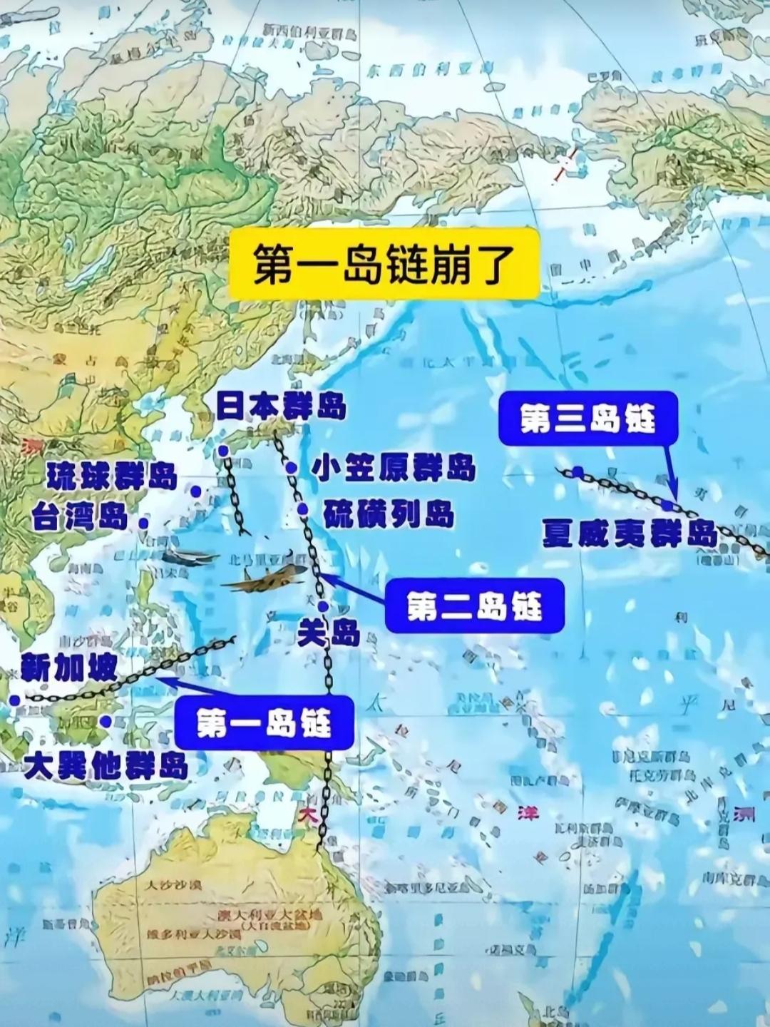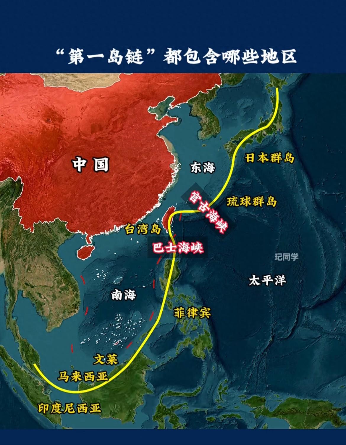 海上包圍則完全不同,由美國主導。它聯合日本、韓國、菲律賓、澳大利亞這些盟友,從日本羣島、琉球羣島開始,向南一直延伸到菲律賓羣島和大巽他羣島,形成一道連續不斷的島弧鏈。這道鏈子就像一道鐵鎖,把中國近海死死鎖在自家門口,無法自由伸展。