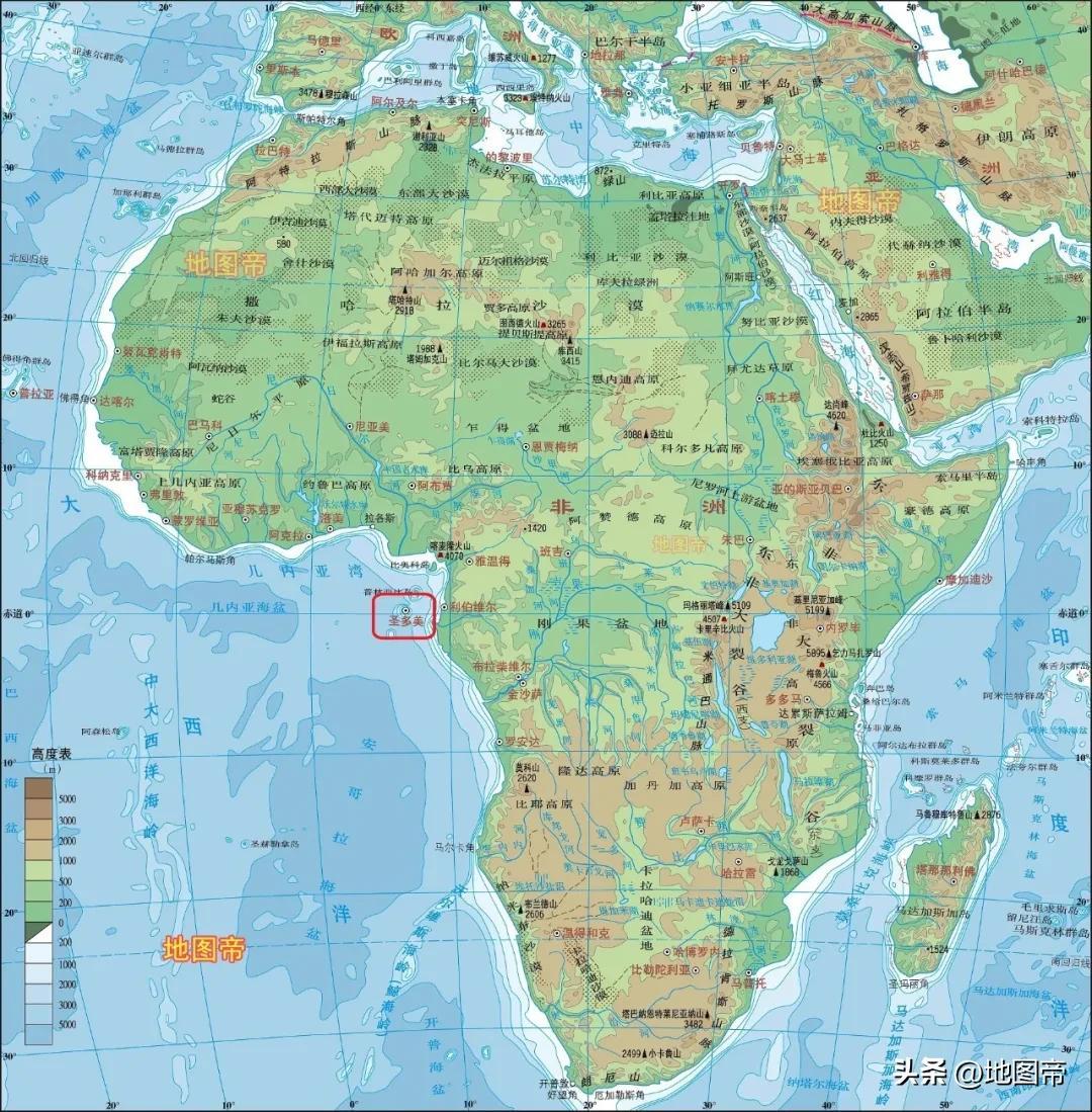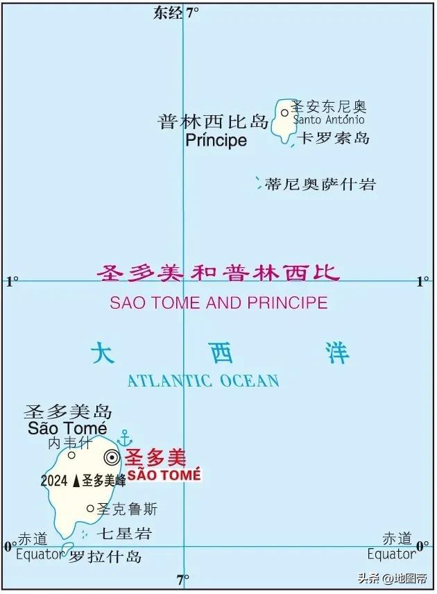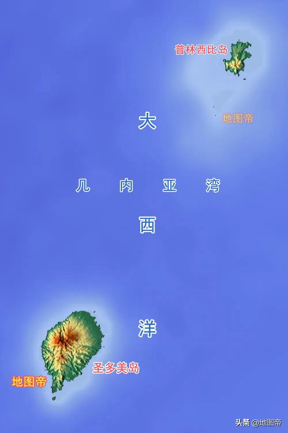 聖多美和普林西比,位於幾內亞灣東南部,由聖多美、普林西比、羅拉斯、卡羅索等14個小島組成,面積1001平方千米,比我國崇明島小,不過它有16萬平方千米海域的專屬經濟區。