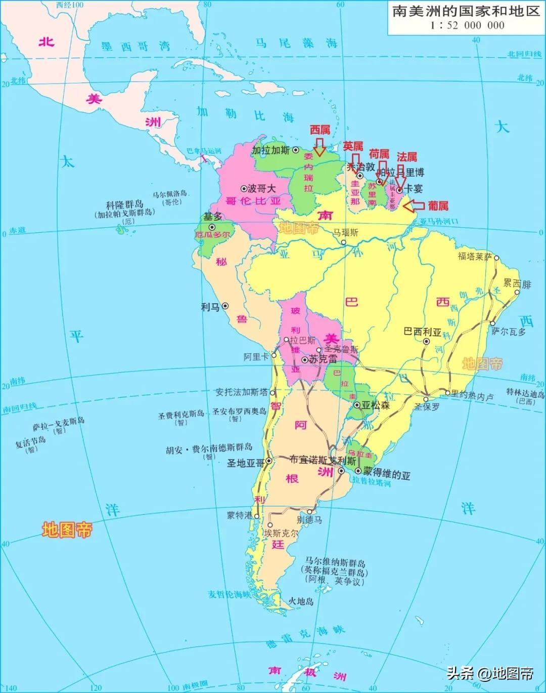 我們知道,南美洲北部有個圭亞那,實際上南美洲曾有五個圭亞那,而且挨在一起。