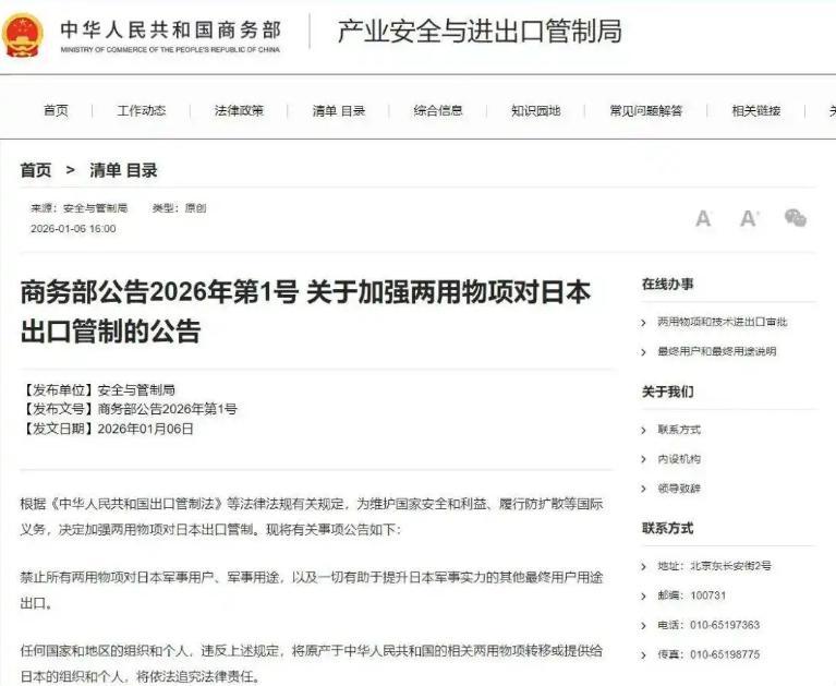 唯有日本因暗示武力介入臺海,被中國禁止了所有兩用物項對日本軍事用戶、軍事用途,以及一切有助於提升日本軍事實力的其他最終用戶用途出口。