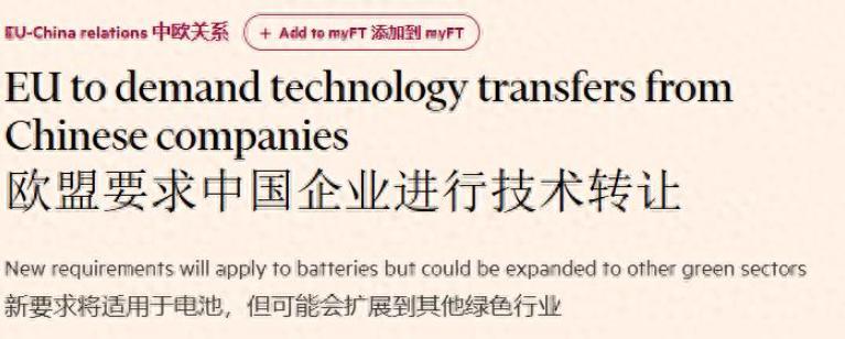 自2024年起,就不時有歐盟官員對外透露,歐盟計劃出臺新規,強制在歐洲投資的中國企業對歐洲進行技術轉讓,以提升歐洲的產業競爭力。