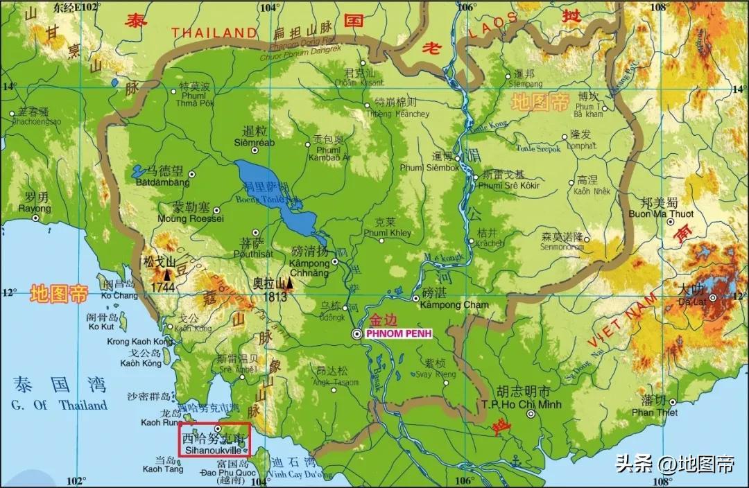 柬埔寨大多數河流,都匯入了湄公河,在越南入海。柬埔寨雖然海岸線也不少,但海邊有豆蔻山脈、象山山脈阻擋,缺乏大型河流作爲支撐,港口註定有先天不足,西哈努克港就是在這種地理環境下,成爲柬埔寨第一大港的。