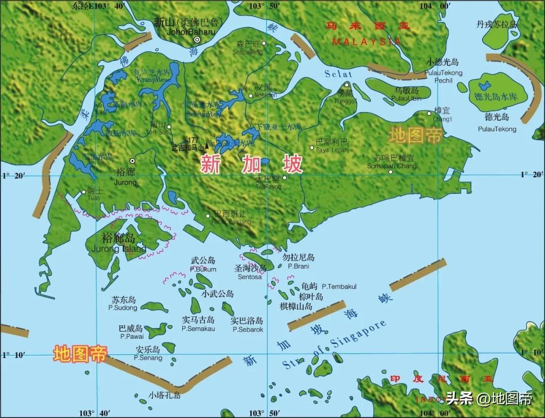 新加坡位於馬來半島南部、馬六甲海峽東南部,隔柔佛海峽與馬來西亞相望,市中心緯度是北緯1°17。