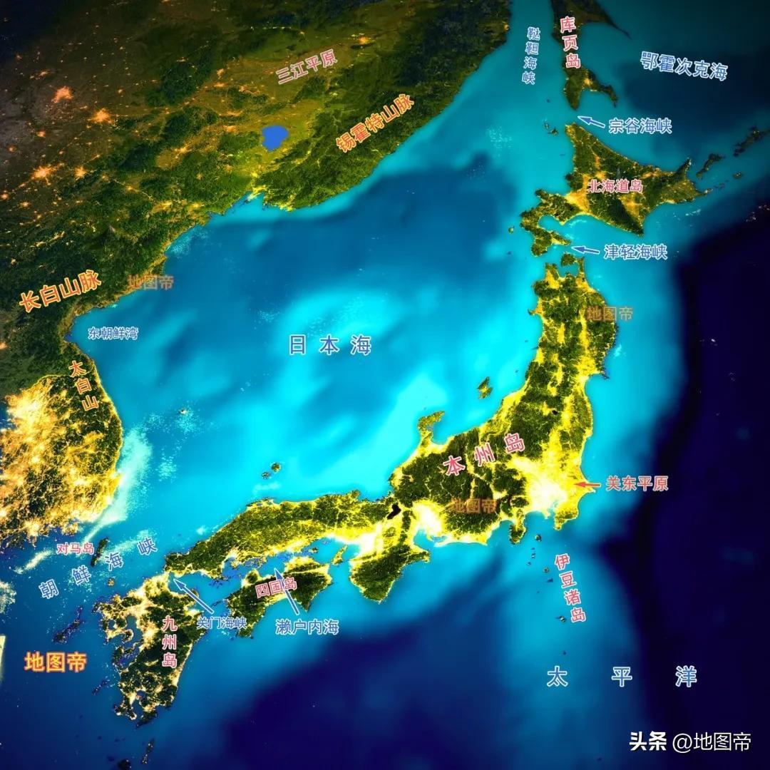 日本位於太平洋西北部,是一個由東北向西南延伸的弧形島國,西隔日本海、朝鮮海峽、黃海,與俄羅斯、朝鮮、韓國、中國相望。日本陸地面積約37.8萬平方千米,放在我國省級行政區中居第九位,包括北海道、本州、四國、九州四個大島和其它小島嶼。