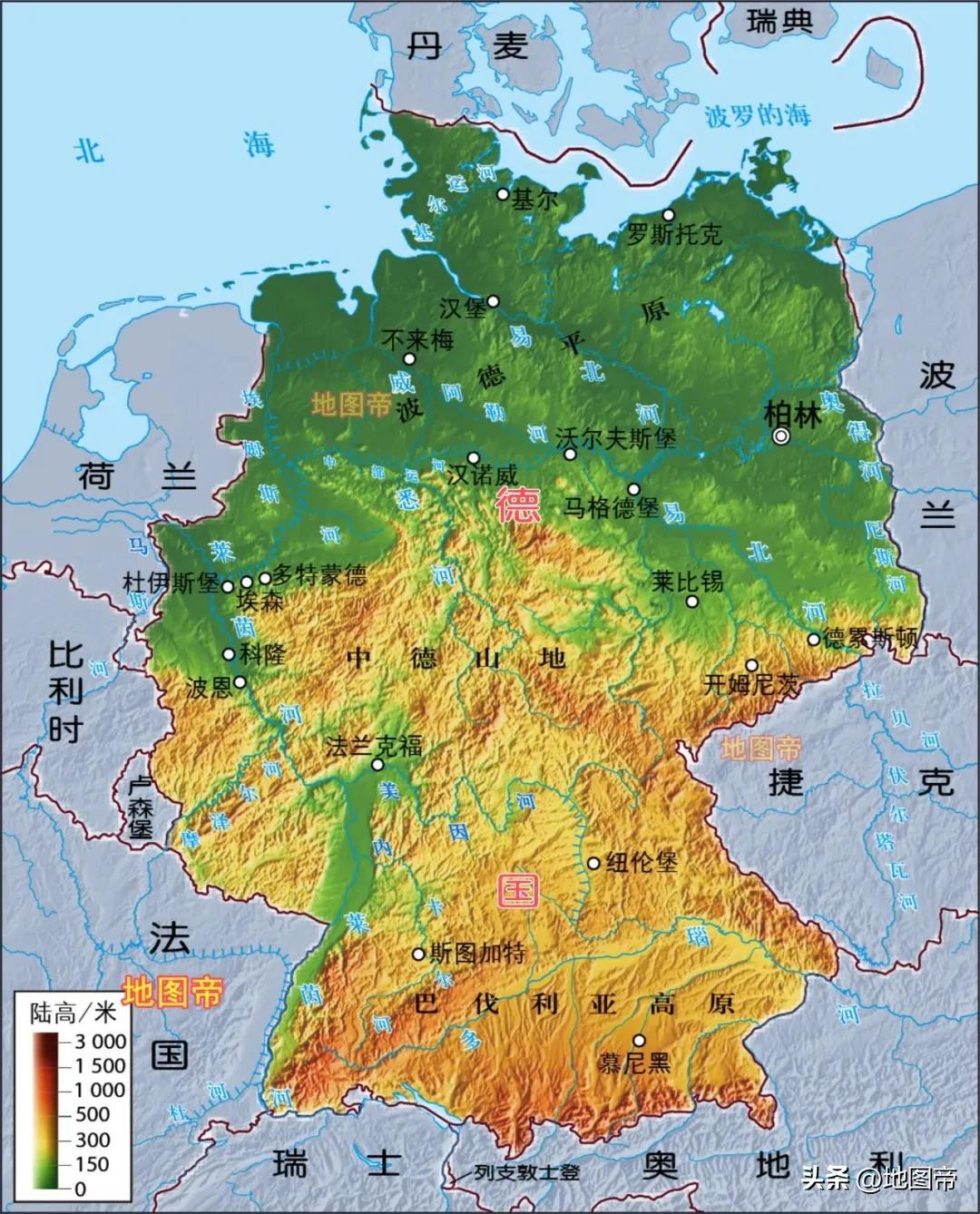 德國位於歐洲中部,面積約35.8萬平方千米,居歐盟第四,歐洲第七,放在我國省級行政區中居第九位。