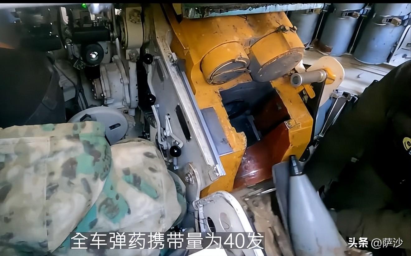 車內配備炮彈40發,包括35發爆破殺傷彈和5枚破甲彈,後者用於近距離遭遇坦克以後的自衛炮擊,可以射穿180毫米厚度垂直裝甲板。