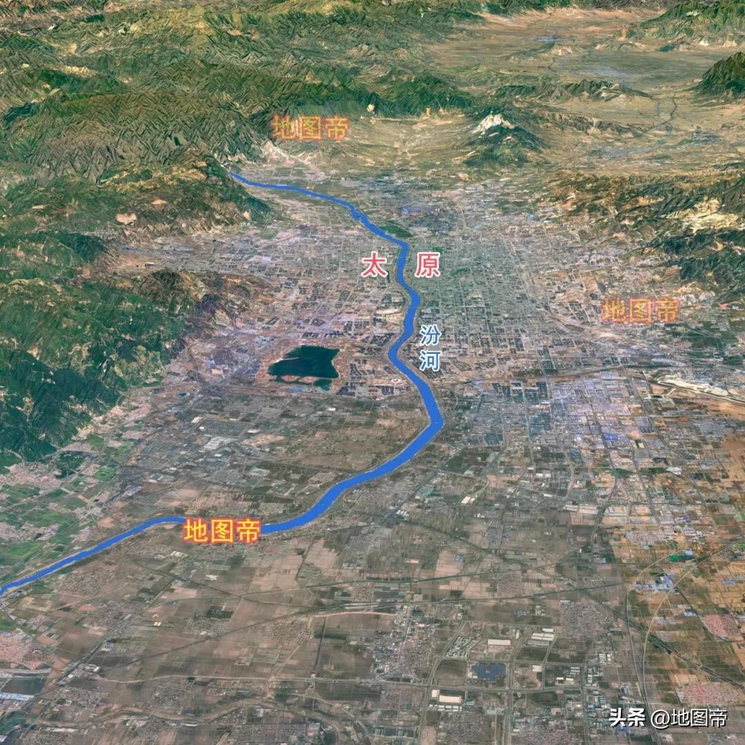 太原三面環山,東爲太行山,西爲呂梁山,北爲系舟山、雲中山,最高峯爲雲頂山,海拔2789米。汾河自西北入太原,自北向南貫穿城區,九條支流橫貫東西。