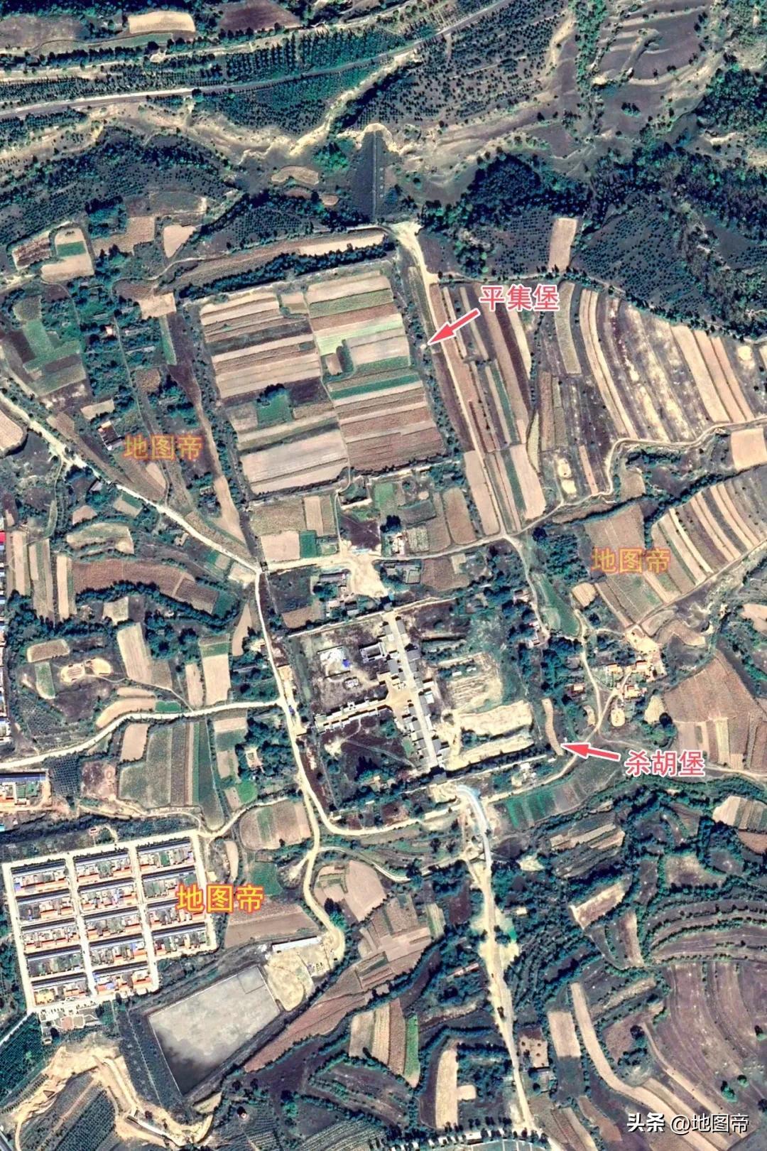 殺胡堡和平集堡成倚角之勢,後來又修城牆,將兩城連在一起,總面積0.14平方千米。