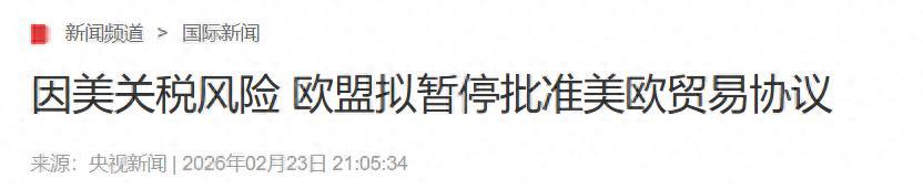 1.《因美關稅風險 歐盟擬暫停批准美歐貿易協議》2026年02月23日 21:05:34| 來源:央視新聞