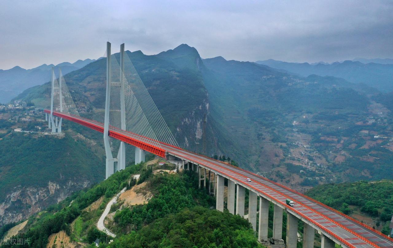 很多人只看625米的高度。它的主橋跨徑爲1420米,也刷新了山區橋樑紀錄。第一高,第一跨度。橋樑建設的難度隨之增大。