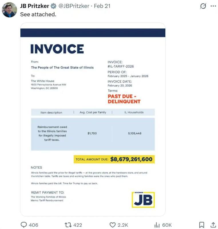 民主黨也從中看到了計劃,以伊利諾伊州州長普里茨克爲首的多名民主黨州長,藉口特朗普關稅導致物價上漲,令消費者日常開銷增加,要求特朗普政府給州內民衆“退錢”。