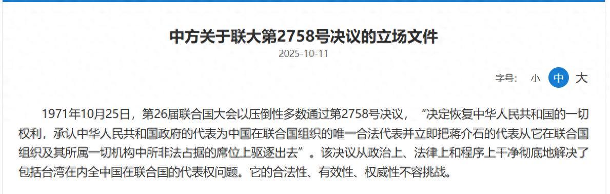 1.《中方關於聯大第2758號決議的立場文件》2025-10-11| 來源:中國人民外交學會