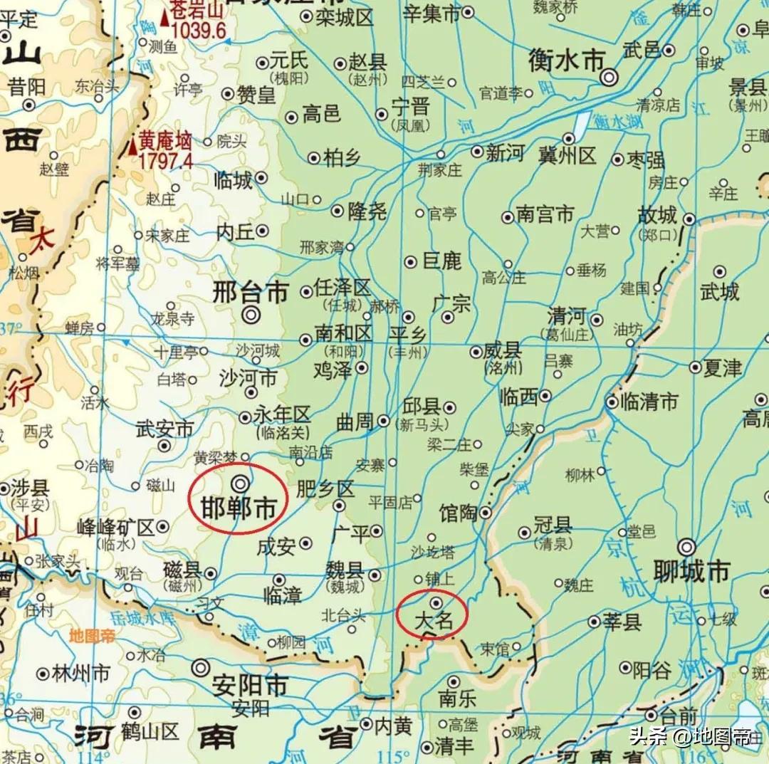 邯鄲大名縣地處華北平原南部,在冀魯豫三省交界處,東鄰山東冠縣、莘縣,南連河南南樂縣,西交魏縣、廣平縣,北接館陶縣。大名縣處在漳河與黃河之間,漳河、衛河、馬頰河自西南向東北貫穿全境,漳、衛河在縣北匯流,京杭大運河在大名縣東面不遠,永濟渠流經大名縣。古代在一馬平川的華北平原上,最好的自然防禦條件就是河流,魏州(魏郡)是北方的軍事重鎮。