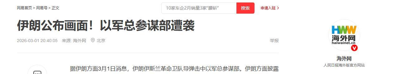 1.《伊朗公佈畫面!以軍總參謀部遭襲》2026-03-01 20:40:05| 來源:海外網