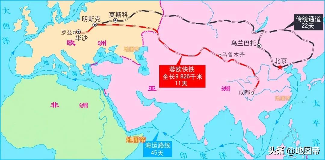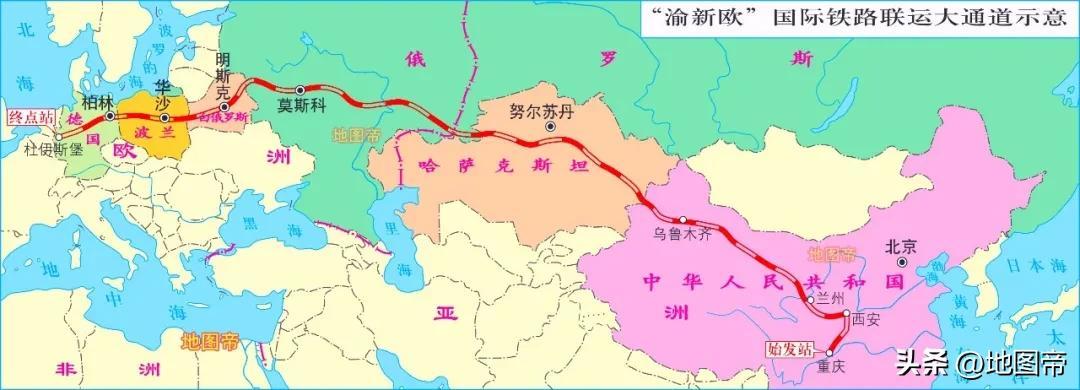 【2】始發陝西西安,經新疆阿拉山口,終點俄羅斯莫斯科,全程7468.2千米,平均耗時10.4 天,上月發送26.8列。