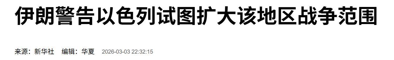 1.《伊朗警告以色列試圖擴大該地區戰爭範圍》2026-03-03 22:32:15| 來源:新華社