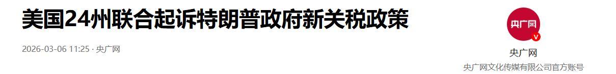 1.《美國24州聯合起訴特朗普政府新關稅政策》2026-03-06 11:25| 來源:央廣網