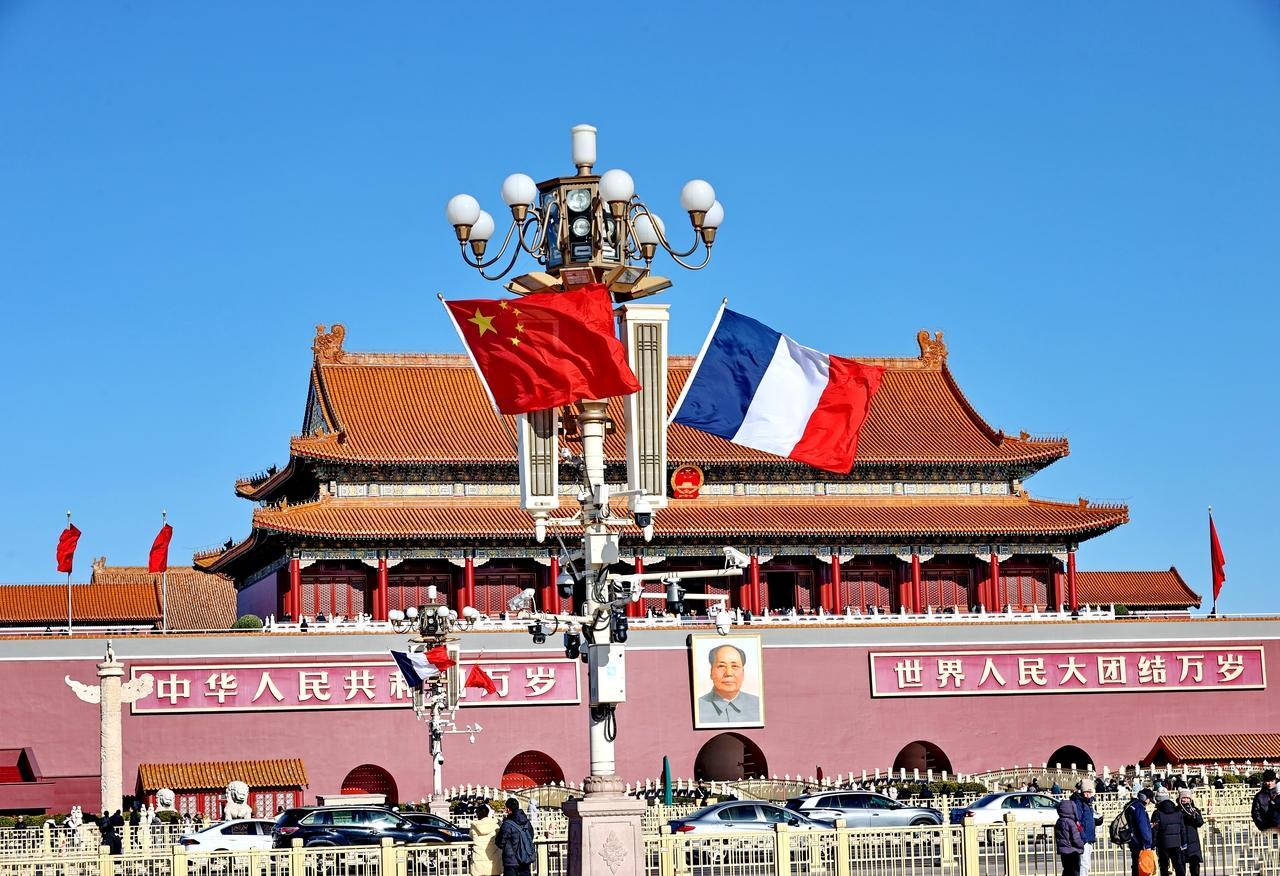 圖|法國總統馬克龍訪華期間天安門懸掛中法國旗
