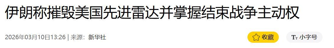 1.《伊朗稱摧毀美國先進雷達並掌握結束戰爭主動權》2026年03月10日13:26| 來源:新華社