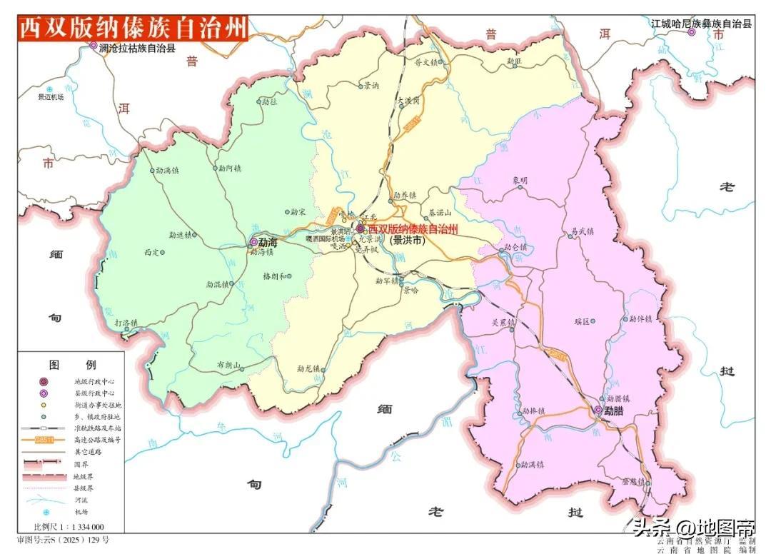 西雙版納東南與老撾相連,西南與緬甸接壤,國境線長966.29千米,擁有版納機場、鐵路口岸、景洪港、關累港、磨憨、打洛、勐滿七個國家口岸。