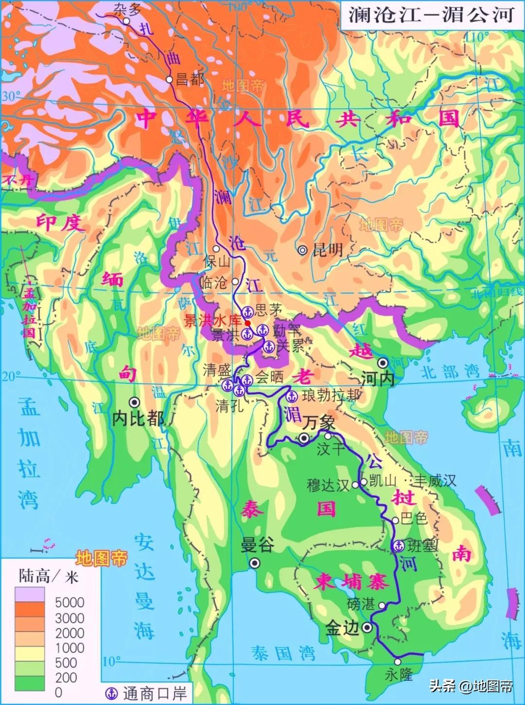 瀾滄江從西雙版納出境,稱湄公河,一江連六國:中、緬、老、泰、柬、越。湄公河是一條黃金水道,可常年通航300噸的客貨輪。