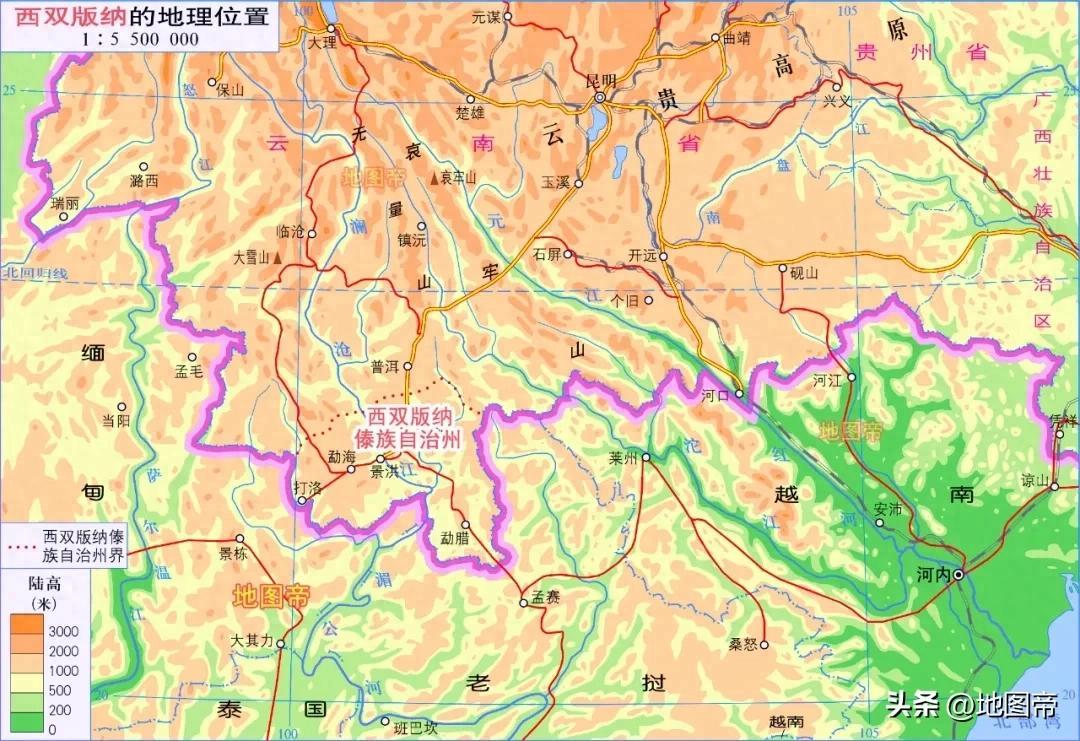 西雙版納傣族自治州,位於雲南省南部,地處熱帶北部邊緣,面積1.9萬平方千米。