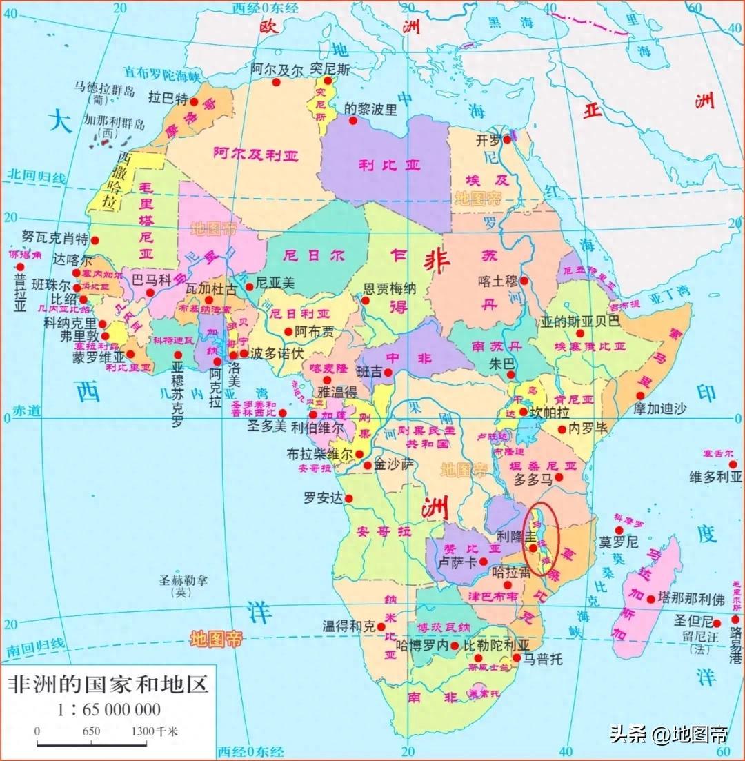 馬拉維(Malawi),位於非洲東南部,國土沿東非大裂谷延伸,南北長約840千米,東西寬80-160千米,面積11.85萬平方千米,放在我國省級行政區中居第二十四位,比江蘇或浙江都要大。