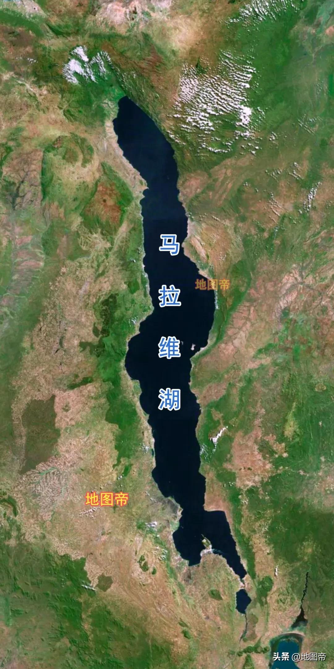 馬拉維湖地處東非大裂谷的南端,長580千米,最寬75千米,面積約2.96萬平方千米,是非洲第三大湖,世界第九大湖,是洞庭湖的十幾倍。