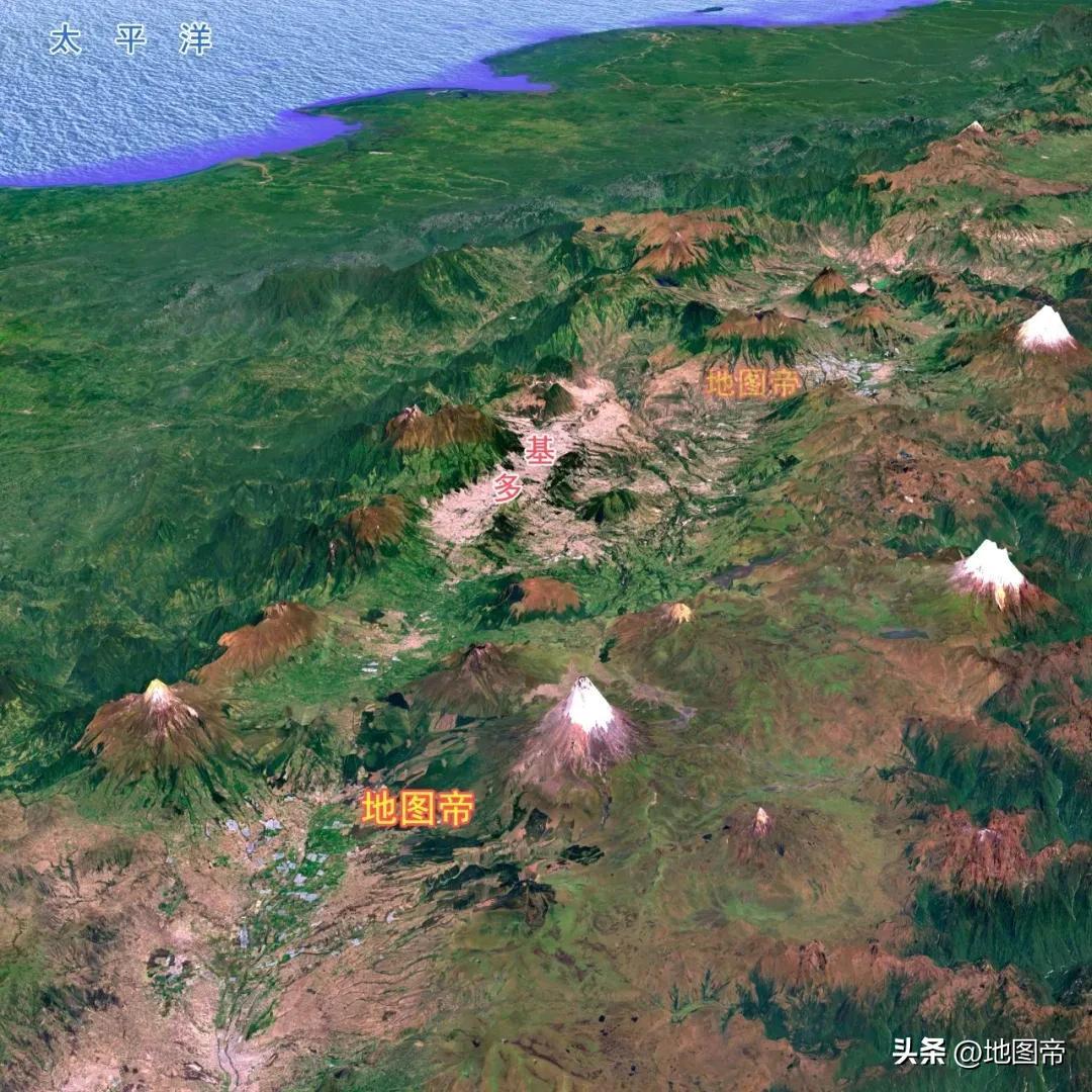 基多在安第斯山脈的蘇馬帕茲山谷中,地勢高峻,城區海拔2640-3040米,平均2840米,爲世界第二高的首都,僅次於玻利維亞首都拉巴斯,市中心緯度是南緯00°13′12″。